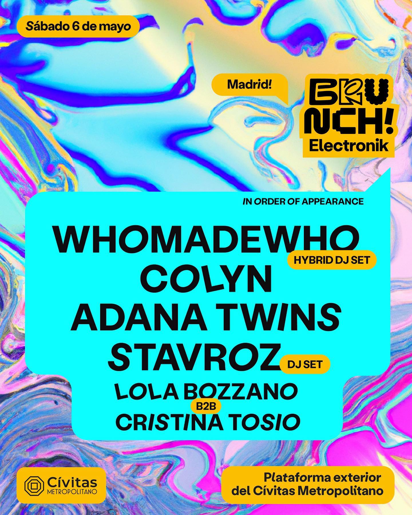 WhoMadeWho (hybrid DJ set), Colyn, Adana Twins, Stavroz (DJ set), Lola Bozzano B2B Cristina Tosio